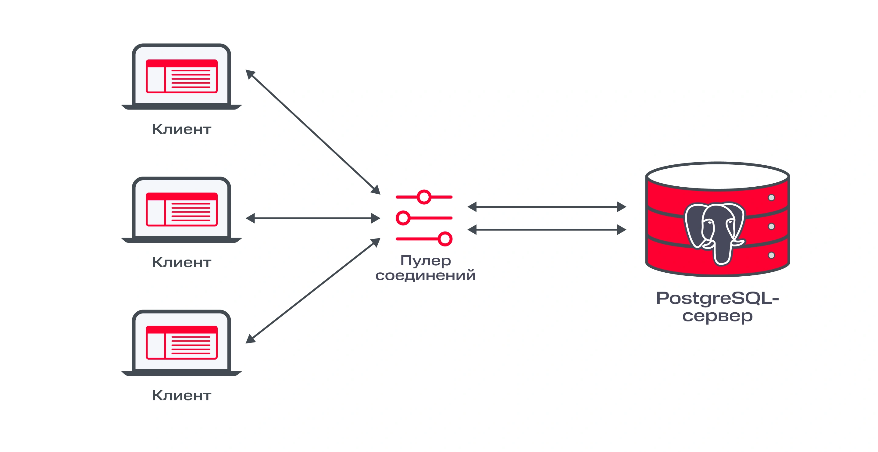 При большом количестве одновременных подключений сотни процессов PostgreSQL могут нагружать систему, поэтому для высоконагруженных систем часто используют connection pooler, который ограничивает реальное число активных процессов на сервере.