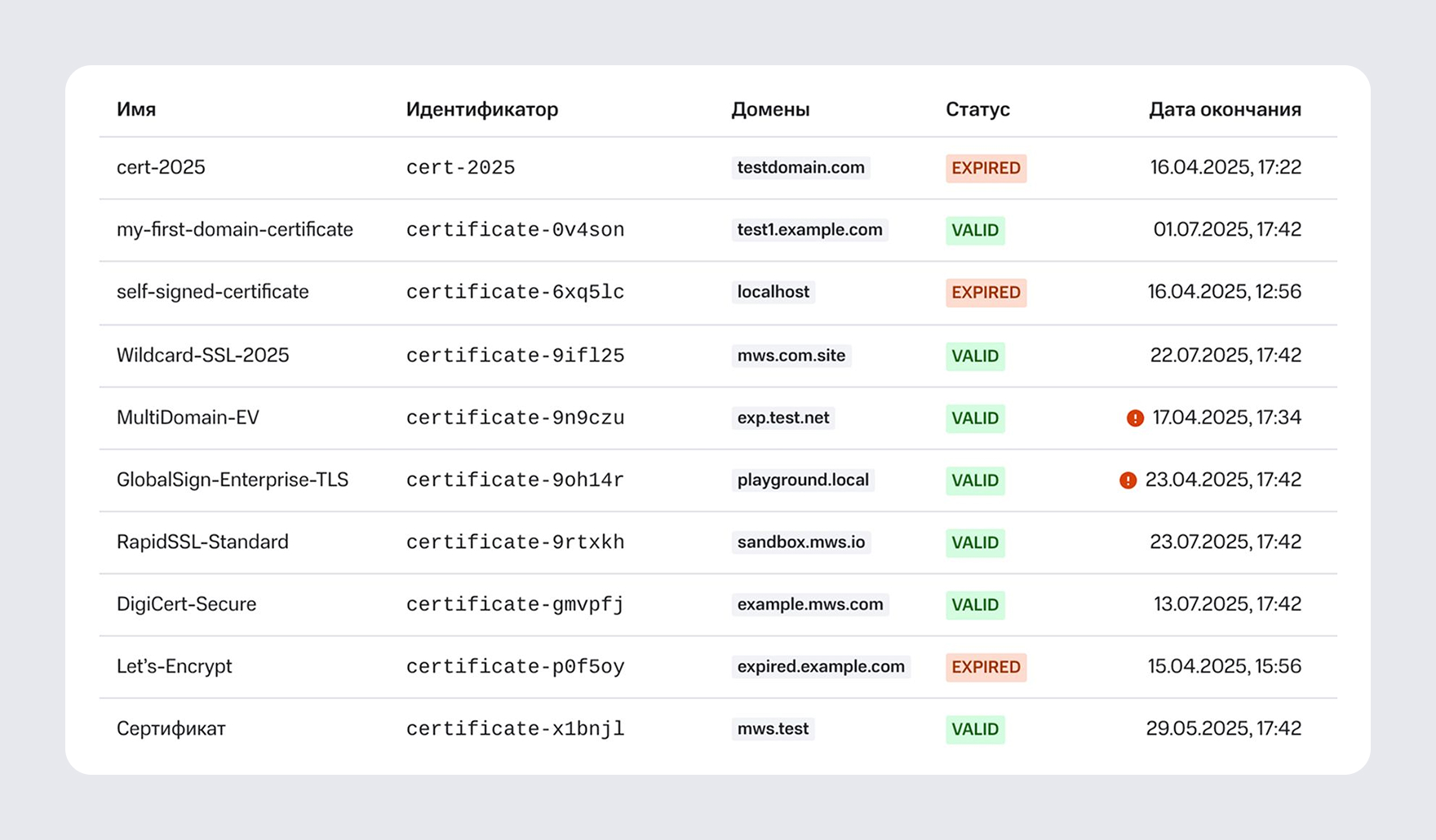 Сервис предоставляет единое место для хранения, обновления, отслеживания использования и удаления сертификатов в облаке MWS