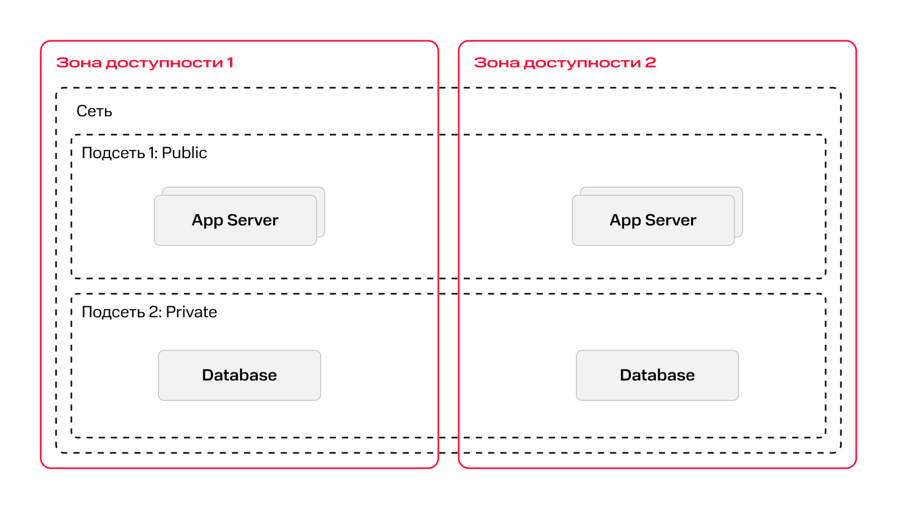 - Две зоны доступности на расстоянии нескольких десятков километров друг от друга. Независимые системы электропитания и охлаждения, выделенные каналы связи. Такая изоляция снижает вероятность каскадных сбоев и повышает отказоустойчивость инфраструктуры