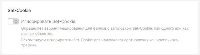 Включите опцию «Игнорировать Set-Cookie» для того, чтобы кэшировать файлы с куками (англ. cookies) как один объект.