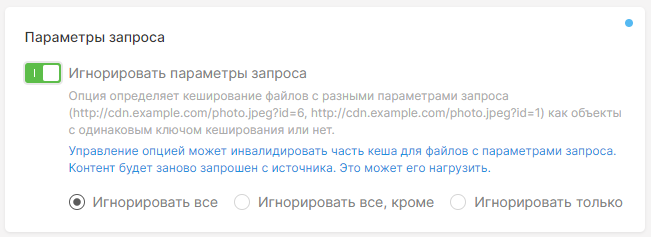 Данная опция определяет, как кэшировать файлы с разными параметрами запроса. Параметр запроса — это уникальная строка запроса (параметр после знака вопроса) в URL.
