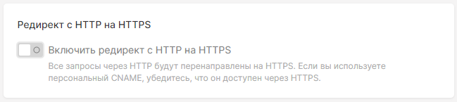 Включение редиректа трафика с HTTP на HTTPS доступно в настройках CDN-ресурса.