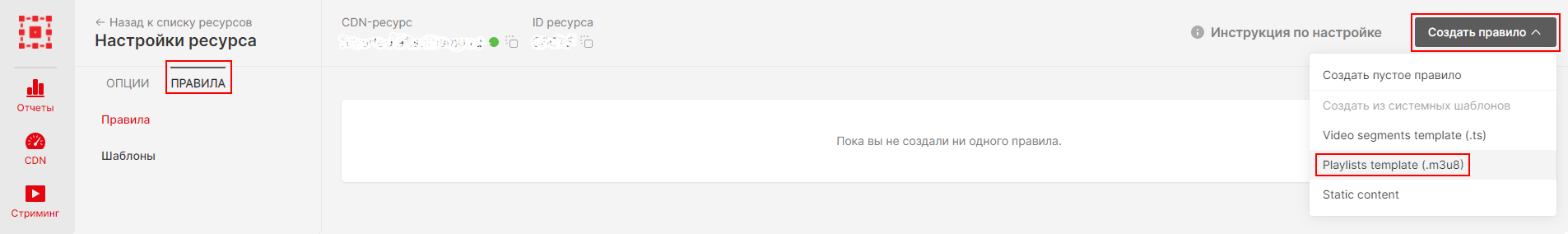 - Добавьте правила кэширования чанков и плейлистов из заготовленных шаблонов.