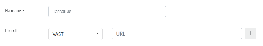 У соответствующего типа рекламы в выпадающем списке выберите стандарт VAST, вставьте ссылку на рекламу и нажмите на кнопку +.