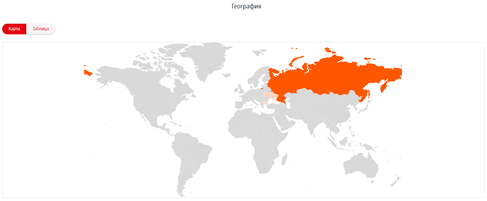 Страна определяется по IP зрителя. Данные можно смотреть в виде карты и в виде таблицы. В просмотрах учитываются пользователи, которые посмотрели видео/трансляцию в течение хотя бы 5 секунд.