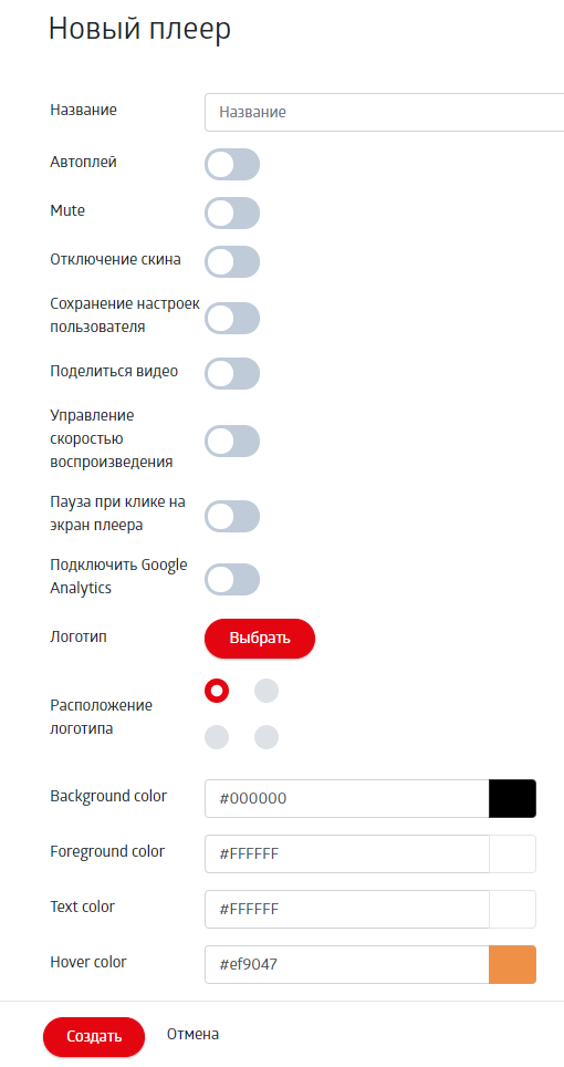 Для создания и настройки плеера с собственным брендингом (кастомного плеера):