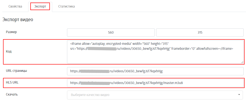 - Скопировать iframe плеера к себе на платформу или скопировать прямую ссылку на видео в собственный плеер.