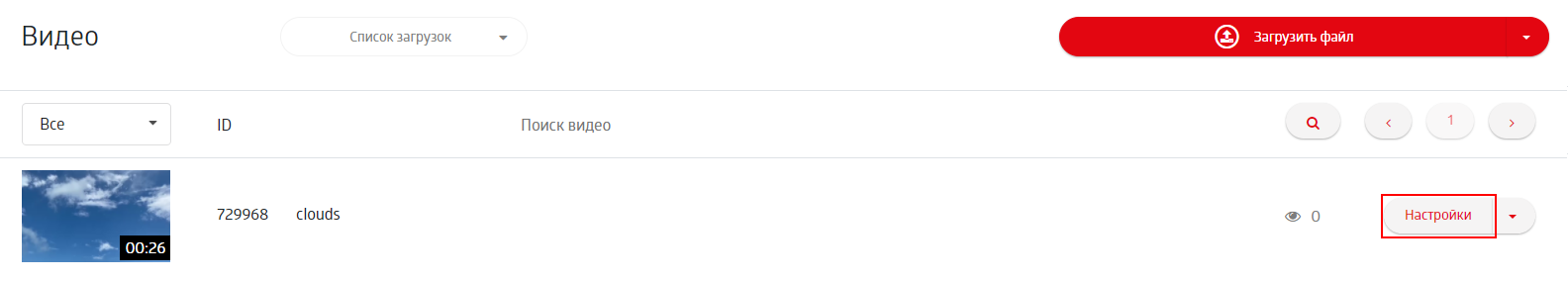 Перейдите в настройки видео, нажав на кнопку Настройки возле нужного видео.