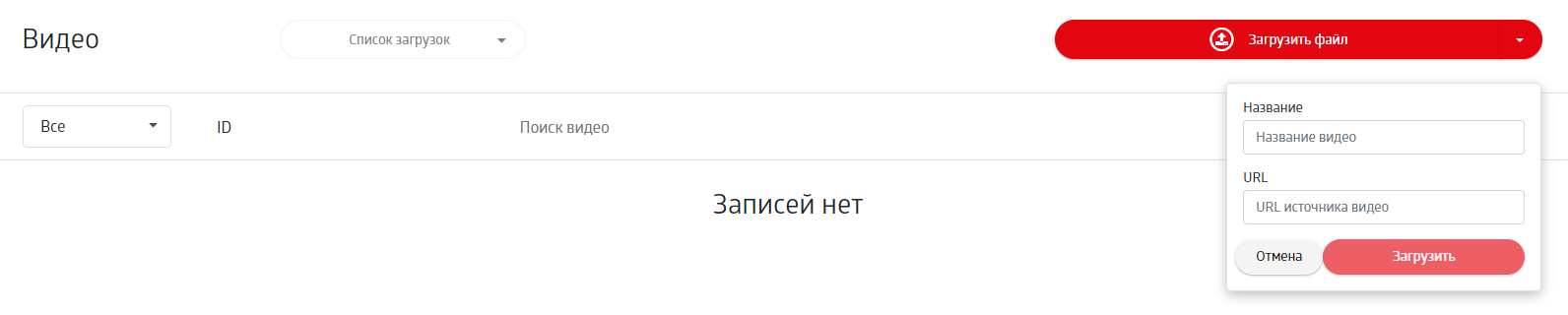 Для загрузки с устройства, перетащите видео в поле раздела Видео или нажмите на кнопку Загрузить файл.