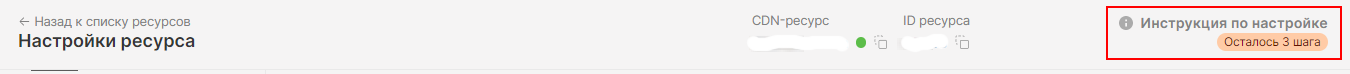 Чтобы открыть инструкцию, перейдите на вкладку CDN, найдите созданный ресурс, перейдите в настройки ресурса, нажмите на кнопку Инструкция по настройке. Настройте DNS.