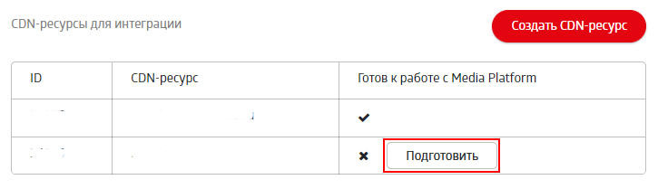 Нажмите на кнопку Подготовить напротив соответствующего CDN-ресурса, чтобы добавить нужные настройки.