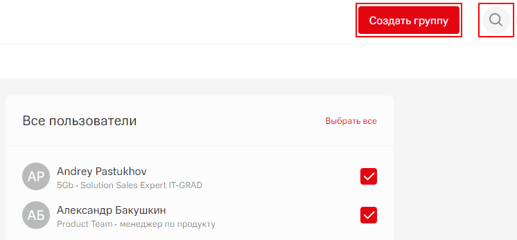 Отметьте в списке пользователей, необходимых к включению в группу.