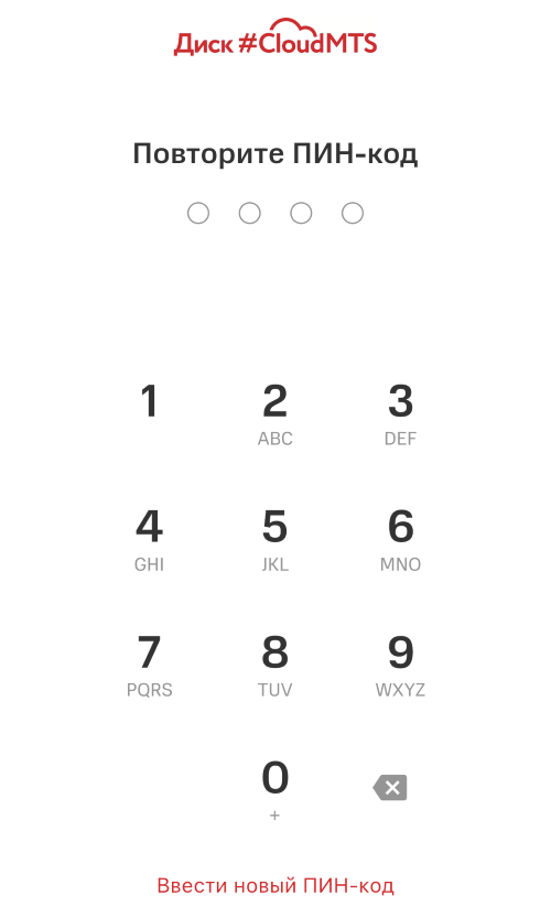 Придумайте и введите четырехзначный пин-код.