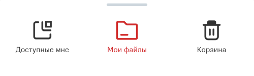 Чтобы открыть папки Доступные мне или Корзина, нажмите на кнопку Мои файлы.