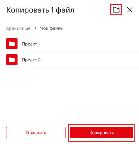 Для копирования нескольких объектов файлового хранилища одновременно, выберите необходимые объекты с использованием клавиш Shift или Ctrl.