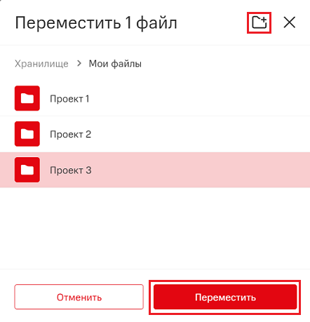 - Перейдите в необходимый раздел/папку файлового хранилища;