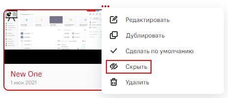 Чтобы скрыть тему, в меню управления темой нажмите на кнопку Скрыть.