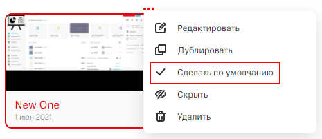 Чтобы установить тему по умолчанию, в меню управления темой нажмите на кнопку Сделать по умолчанию