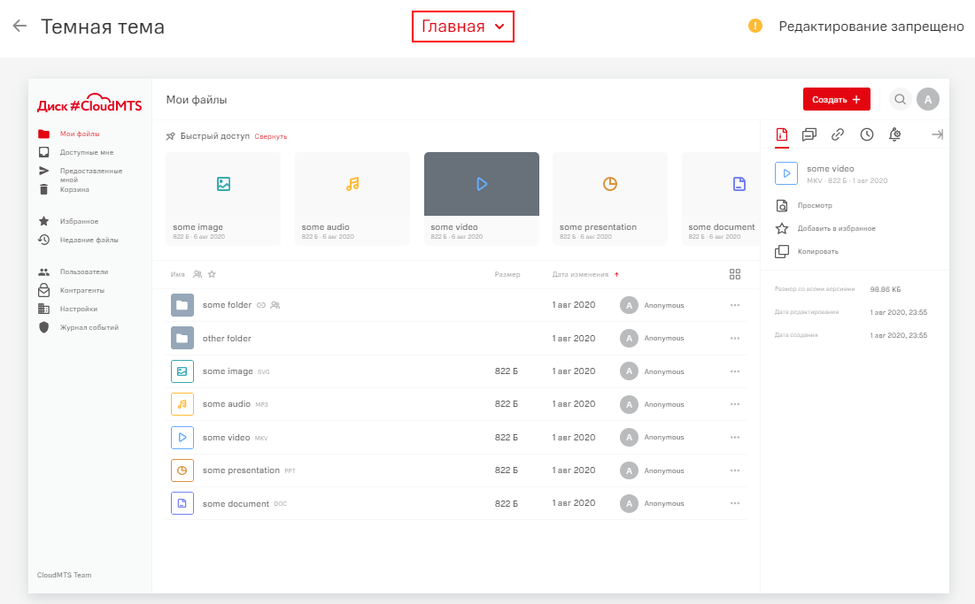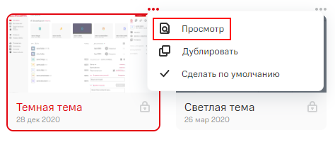 Просмотр возможен для Общих тем, поставляемых в сервисе по умолчанию. Общие темы нельзя отредактировать, скрыть или удалить, но их возможно просмотреть, чтобы ознакомиться с внешним видом системы при данной теме.