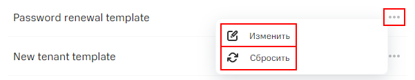 Чтобы сбросить шаблон, в меню управления шаблоном нажмите на кнопку Сбросить.