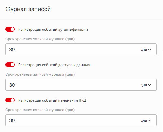Настройки журнала записей позволяют указать: