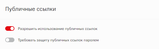 Помимо индивидуальных настроек доступа и прав для каждого пользователя, администратор имеет возможность задать настройки для использования публичных ссылок для всех пользователей сервиса: