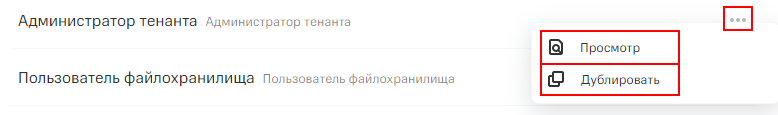 - В меню управления необходимой предустановленной роли выберите команду Дублировать.