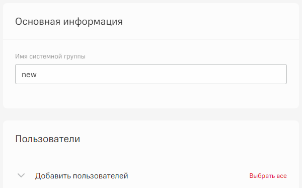 + Добавить системную группу в центре рабочей среды.Задайте имя системной группы и задайте ее участников из списка.