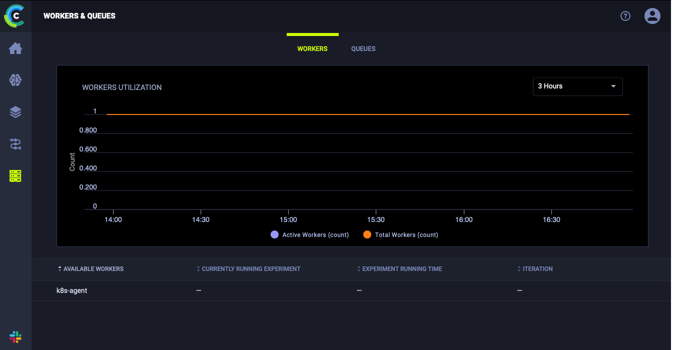 Для проверки доступности приложения в web-интерфейсе ClearML в меню Workers and Queues проверьте наличие зарегистрированных workers.