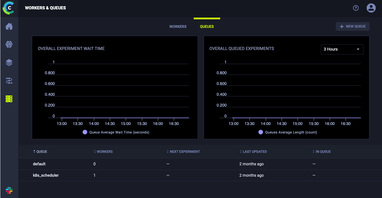 Access keyиSecret key.В web-интерфейсе ClearML в разеделе Workers and Queues перейдите на вкладку Queues, выберите New Queue и создайте очередь с именем "k8s_scheduler". В качестве шаблона используйте прилагаемый файл: clearml.conf.