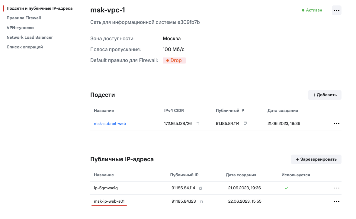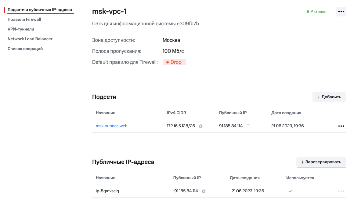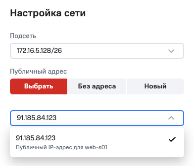 Публичные IPv4-адреса необходимы для публикации облачных ресурсов в сети Интернет. Они могут быть присвоены: