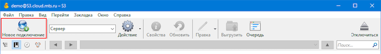 При первом подключения список объектов тенанта будет пустым. Создайте бакет:
