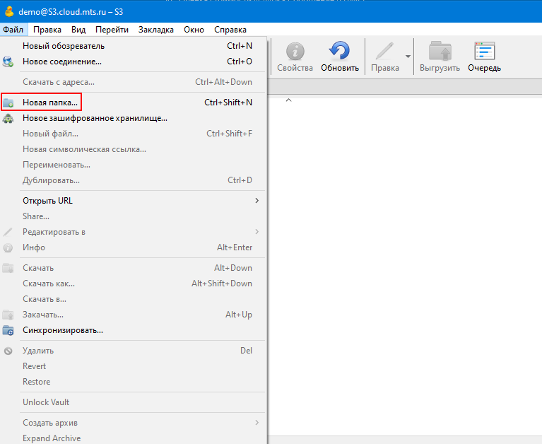 Нажмите правой кнопкой мыши на требуемый бакет.