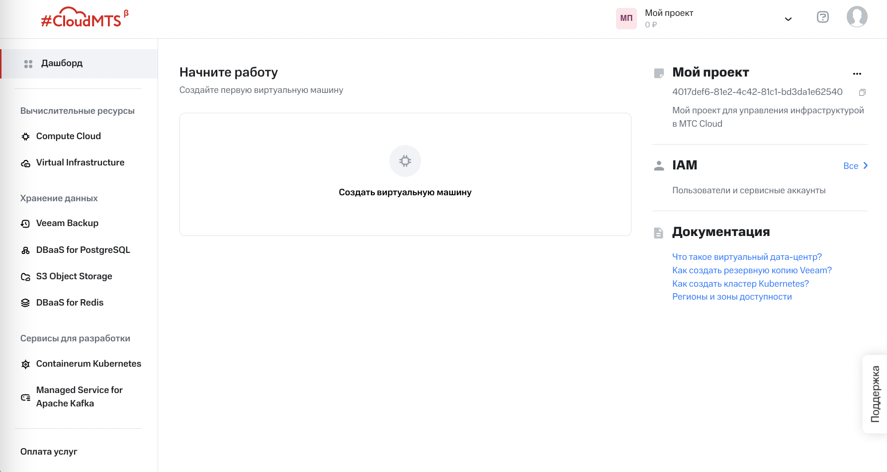После завершения регистрации вы попадаете в пользовательский интерфейс MWS, в раздел Дашборд.