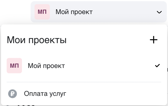 Откройте свойства вашего платежного аккаунта. Для этого выберите пункт Оплата услуг — либо в нижней части меню сервисов, либо из меню проектов.