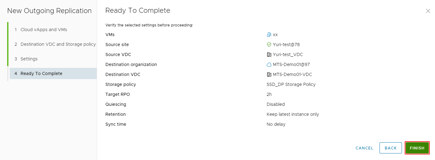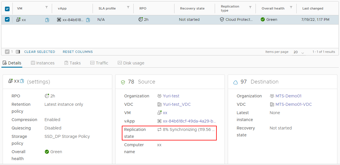 Процедура репликации, переключения и миграции vApp и VM в сценариях On-premise to Cloud и Cloud to Cloud аналогична.