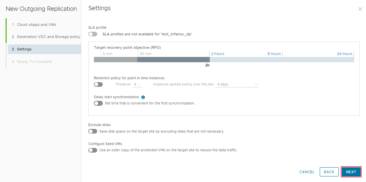 - Включите опцию Configure Seed VMs, чтобы на площадке назначения использовались более старые копии VM.