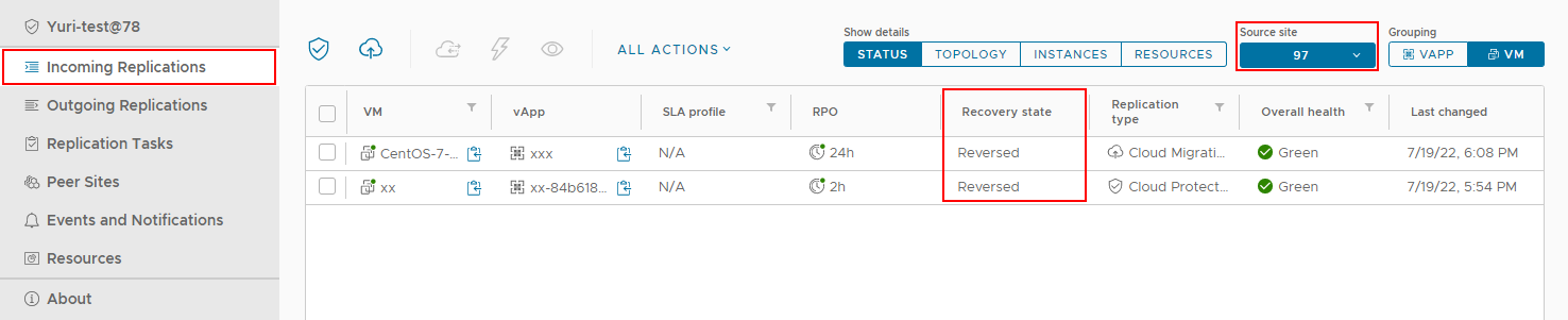 Чтобы вернуться с резервной площадки на основную после аварийного переключения, можно запустить обратную репликацию или миграцию. В обоих случаях процедура выполняется аналогично. В данной статье будет рассмотрен пример с заданием на репликацию.
