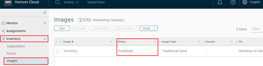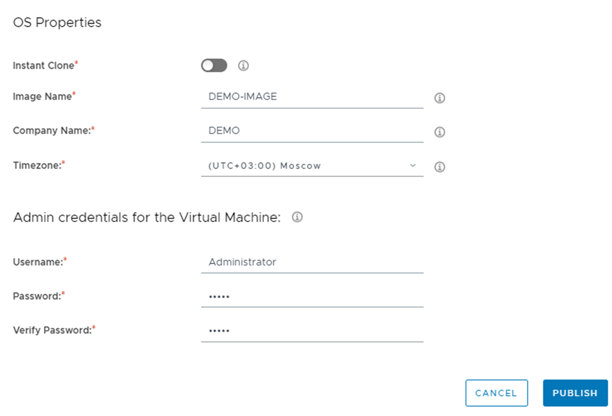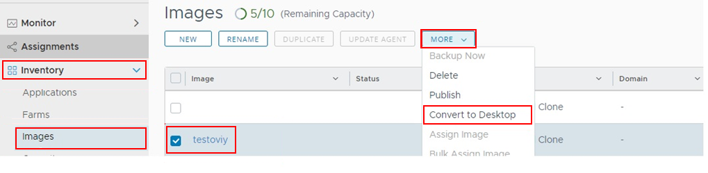 Для конвертации в Мастер Образ в панели Администратора Horizon Cloud: