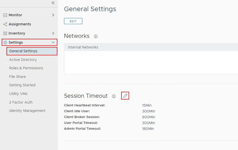 Для изменения параметров нажмите на карандаш в разделе Session Timeout.