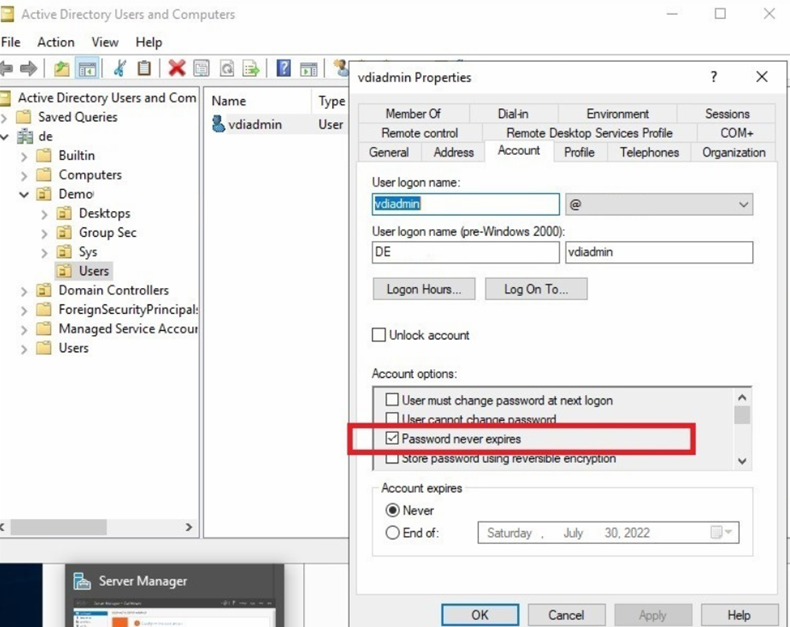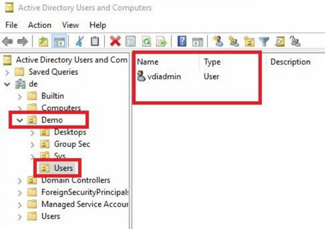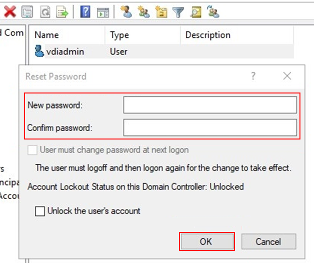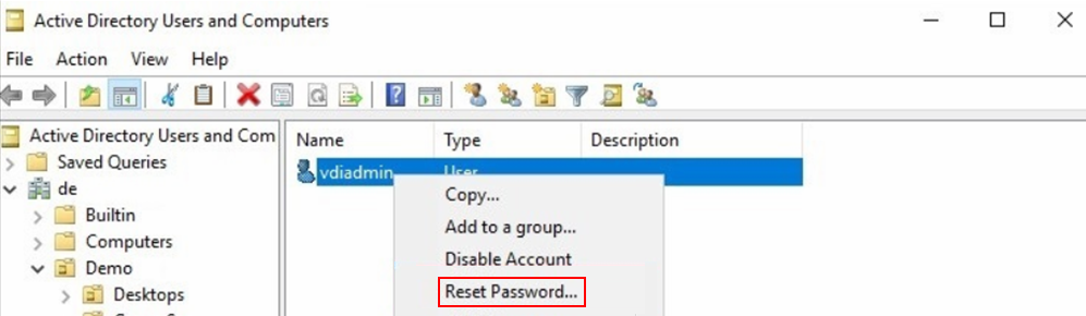 Нажмите правой кнопкой мыши на пользователя vdiadmin.