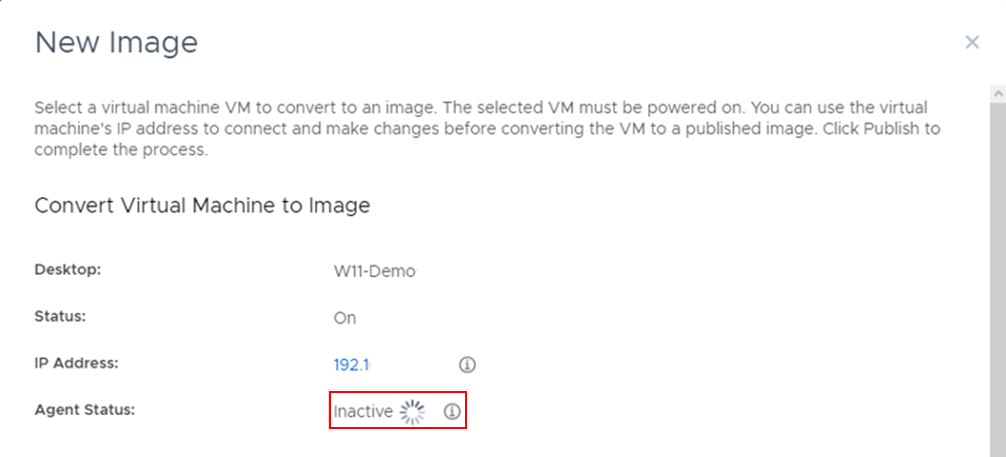 При попытке cконвертировать VM в Мастер Образ агент не может загрузиться, статус агента Inactive.