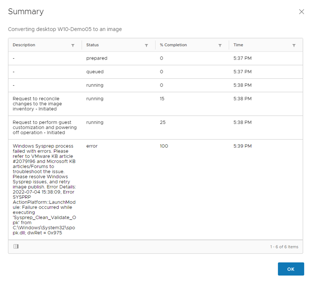 Одна из частых ошибок – ошибка Windows sysprep, которая приводит к сбою публикации образа.