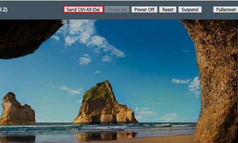Нажмите на кнопку Send Ctrl-Alt-Del и авторизуйтесь в ОС под учетной записью локального администратора.