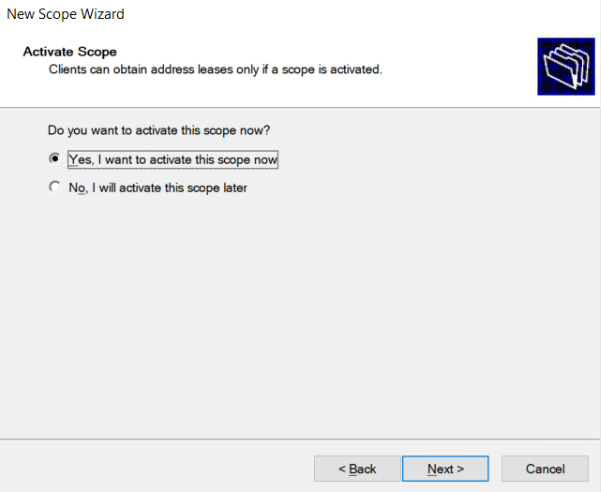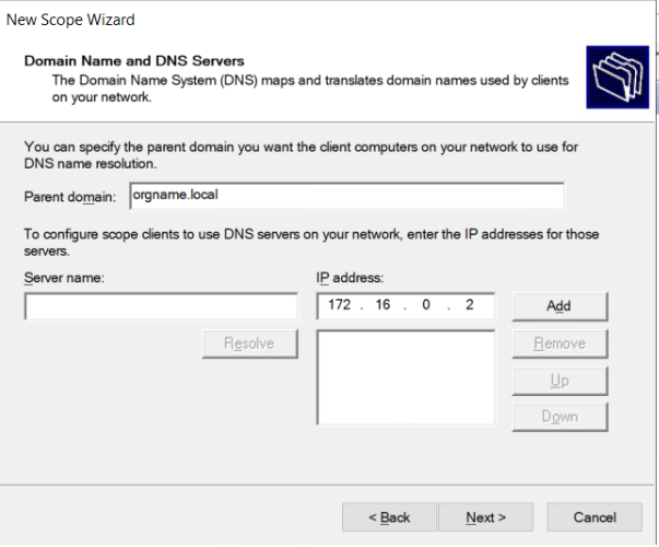Откроется окно настройки DHCP-сервера New Scope Wizard.