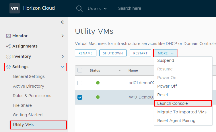 В блоке Settings перейдите на вкладку Utility VMs.