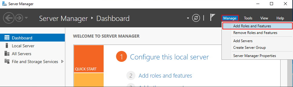 В выпадающем меню выберите Add Roles and Features.