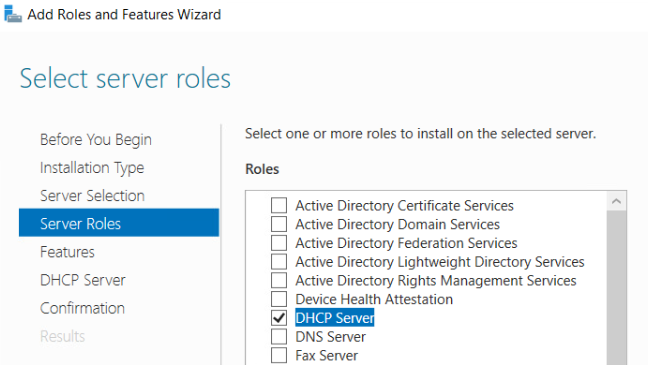 Выберите роль DHCP Server.