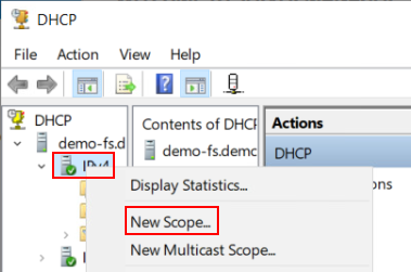 В диалоговом окне DHCP правой кнопкой мыши нажмите на пункт IPv4.
