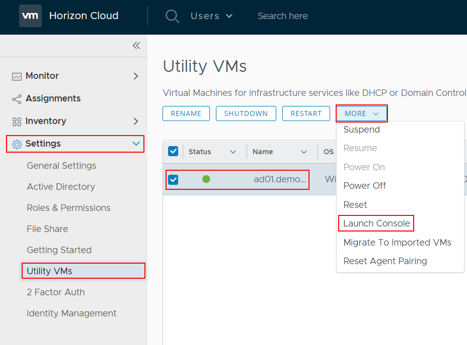 ad01.На панели управления VM нажмите на кнопку MORE.